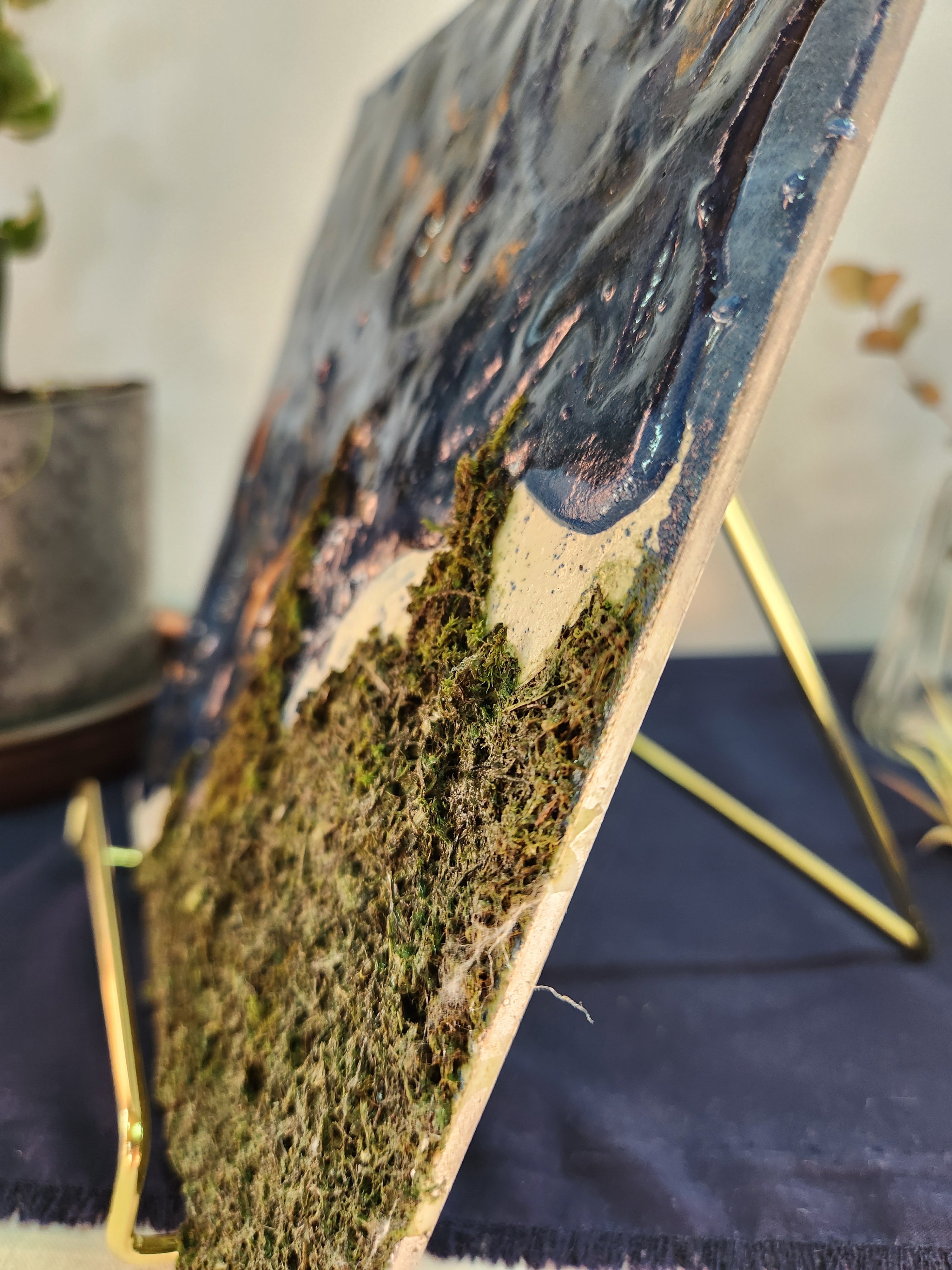 高品質の天然藍(100%)と天然苔、コンクリートを組み合わせたアートパネルです。