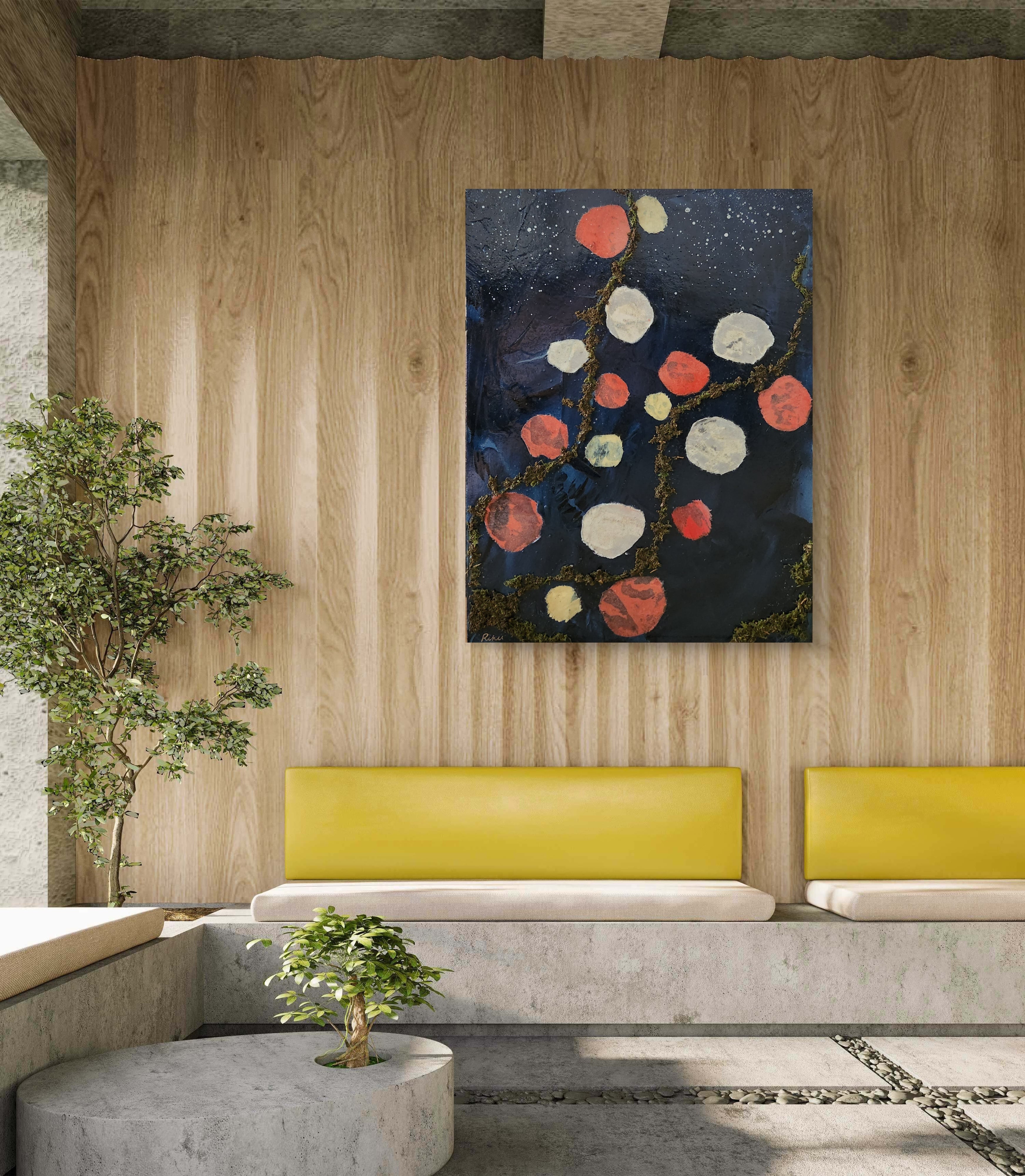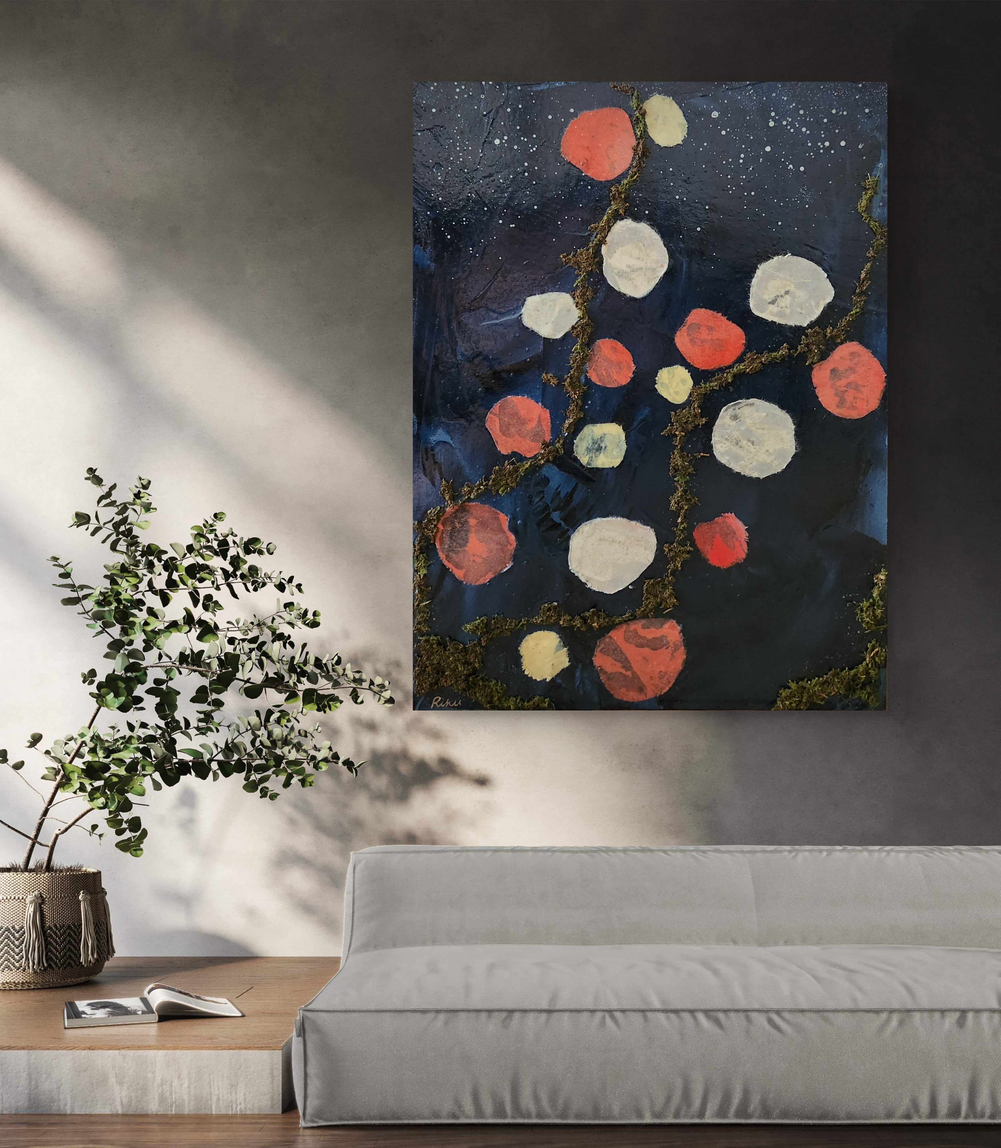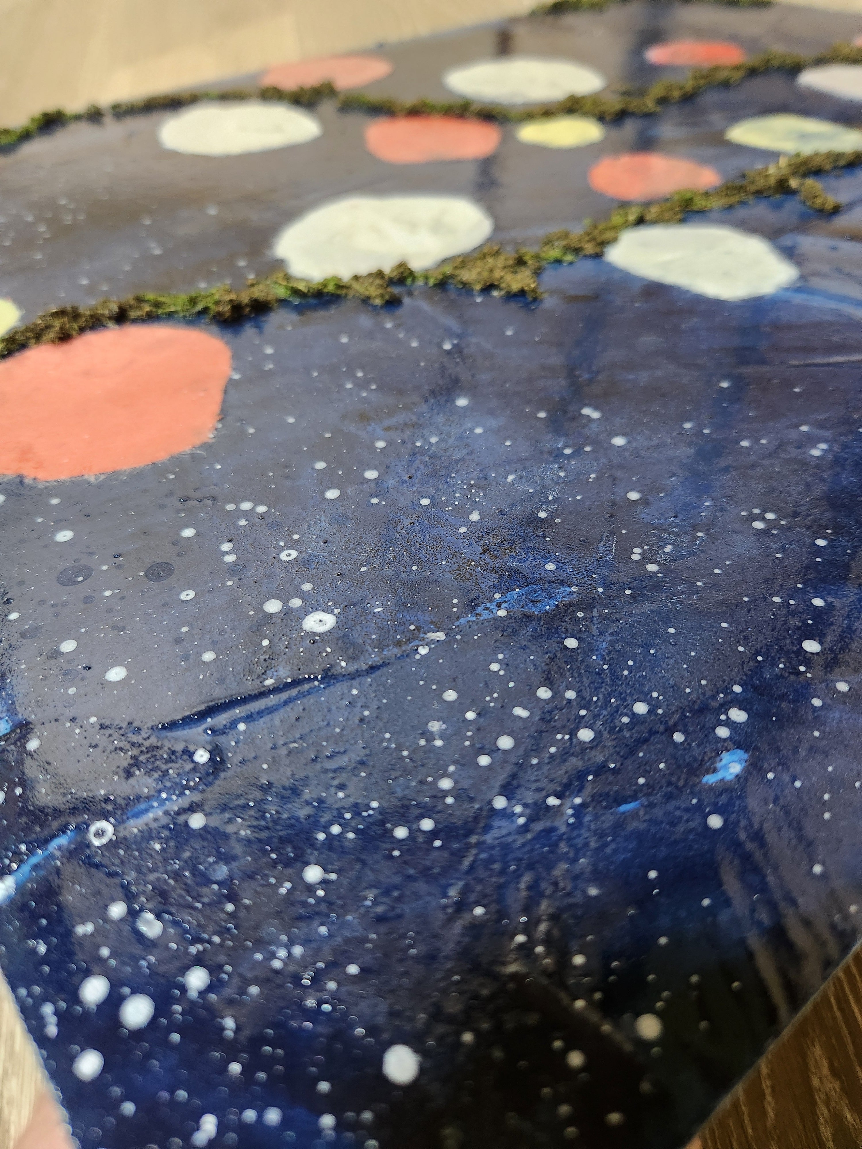 高品質の天然藍(100%)と天然苔、コンクリートを組み合わせたアートパネルです。