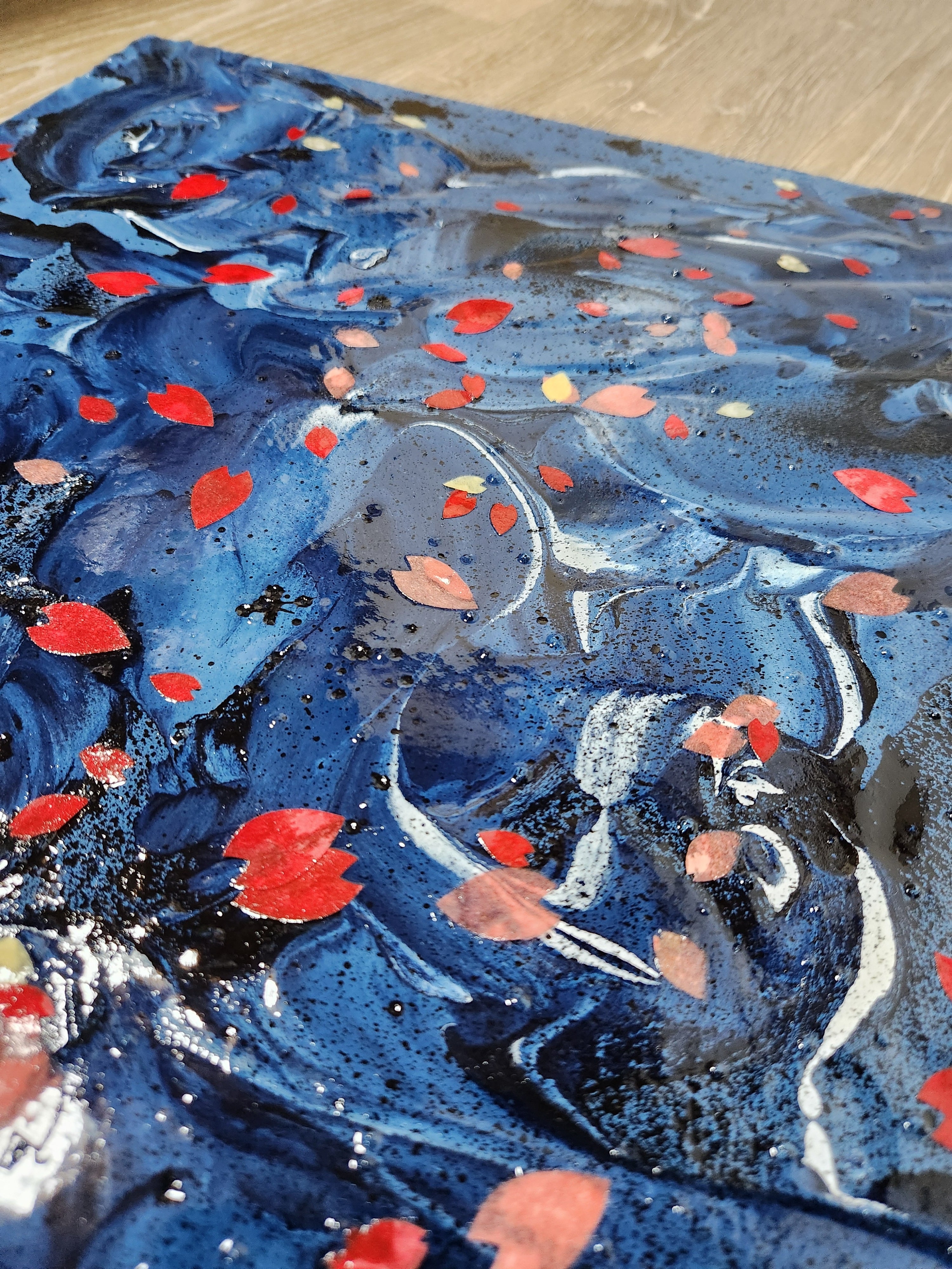 高品質の天然藍(100%)、ねぷた和紙、コンクリートを組み合わせたアートパネルです。